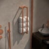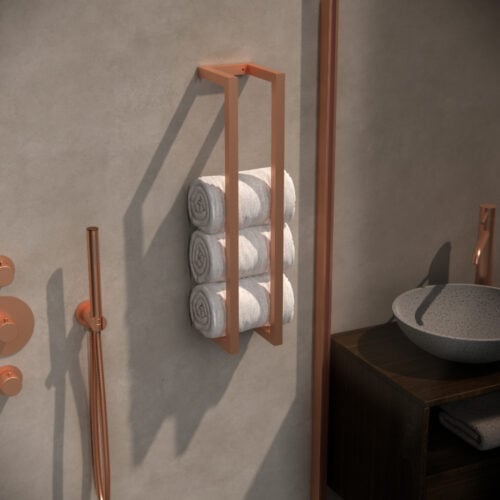 Het Guido Gusto Dual Handdoekrek straalt stijl en klasse uit dankzij de copper afwerking en het strakke ontwerp. Het rek is ontworpen met oog voor detail en past moeiteloos in diverse interieur stijlen van modern tot industrieel. De elegante uitstraling van dit handdoekrek voegt een vleugje luxe toe aan iedere badkamer, waardoor het een echte blikvanger is.