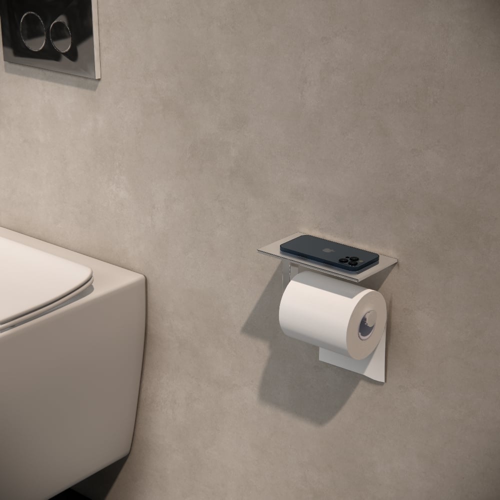 Met een lengte van 18 cm biedt deze houder ruim plaats aan voor een standaard toiletrol. Wat onderscheidt deze toiletrolhouder? Het vlakke bovenoppervlak ideaal om je telefoon, sleutels of geurstokjes op te leggen tijdens je badkamer bezoek. Zo combineert hij comfort met functionaliteit zonder in te leveren op stijl.