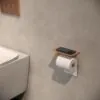 Met een lengte van 18 cm biedt deze houder ruim plaats aan voor een standaard toiletrol. Wat onderscheidt deze toiletrolhouder? Het vlakke bovenoppervlak ideaal om je telefoon, sleutels of geurstokjes op te leggen tijdens je badkamer bezoek. Zo combineert hij comfort met functionaliteit zonder in te leveren op stijl.