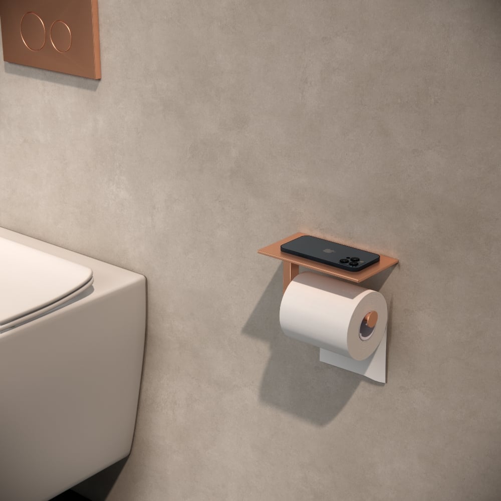 Het strakke silhouet, de subtiele rondingen en de hoogwaardige copper afwerking maken deze toiletrolhouder tot een elegante toevoeging aan elke badkamer inrichting. Of je nu kiest voor een industriële, moderne of Scandinavische stijl past deze toiletrolhouder zich moeiteloos aan en voegt net dat beetje extra klasse toe.