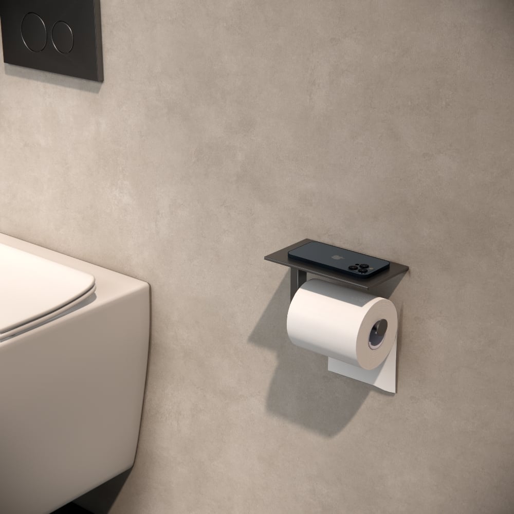 Het strakke silhouet, de subtiele rondingen en de hoogwaardige gun metal afwerking maken deze toiletrolhouder tot een elegante toevoeging aan elke badkamer inrichting. Of je nu kiest voor een industriële, moderne of Scandinavische stijl past deze toiletrolhouder zich moeiteloos aan en voegt net dat beetje extra klasse toe.