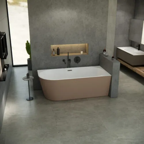 Dit type bad is gemaakt voor een linkse hoekopstelling. Uiteraard is dit type hoekbad ook te verkrijgen in de rechts uitgevoerde variant. Bij het bad Luciano heeft u beste van twee werelden namelijk de feel en de looks van een vrijstaand bad maar tevens ook gemakken van een inbouw bad.
