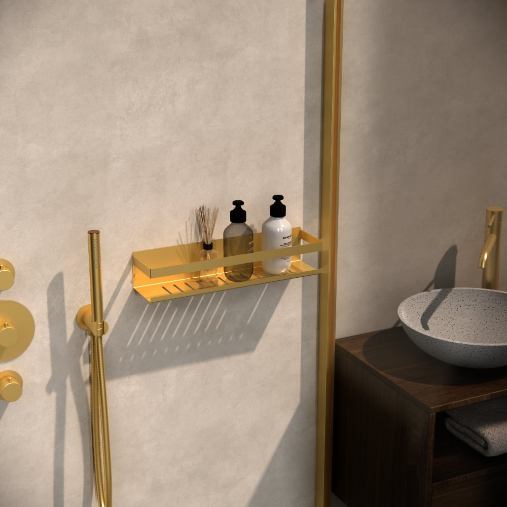 Ontdek de elegante Guido Gusto doucherek 40x8cm mat goud. Een verfijnde toevoeging aan jouw badkamer interieur. Met het strakke ontwerp en mat gouden afwerking straalt dit doucherek tijdloze klasse uit. Het biedt niet alleen praktische opbergruimte maar tilt ook de uitstraling van elke douche naar een hoger niveau. Of je nu een moderne of klassieke badkamer hebt dit type doucherek past perfect binnen elk interieur. Laat je badkamer stralen met dit stijlvolle en functionele accessoire van Guido Gusto.