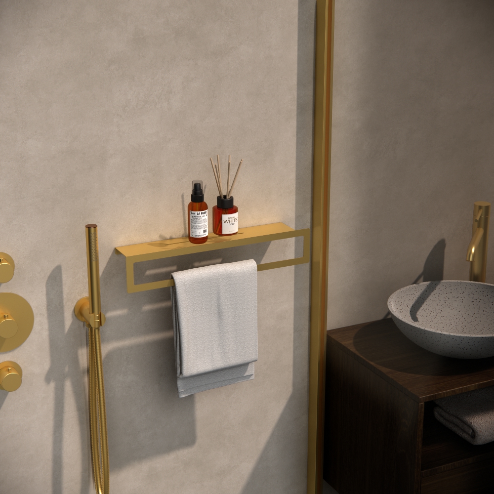 Het Guido Gusto handdoekrek is ontworpen met oog voor detail en past moeiteloos in verschillende badkamerstijlen. De strakke vormgeving en mat gouden afwerking geven het rek een verfijnde en tijdloze uitstraling. Zo is het niet alleen een praktisch accessoire maar ook een stijlvol element aan de muur. Het moderne design sluit perfect aan bij hedendaagse interieurtrends en past bij zowel een minimalistische als een industriële of luxe look. Het handdoekrek is praktisch in gebruik en verfijnd in vorm en tilt de uitstraling van je badkamer naar een hoger niveau.