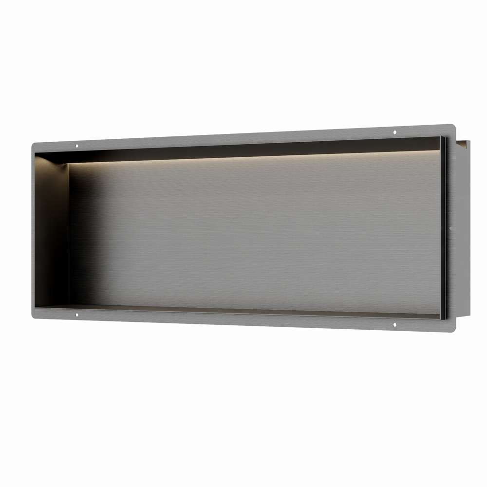 Ontdek de perfecte balans tussen functionaliteit en stijl met onze hoogwaardige inbouwnis van roestvrij staal. Deze moderne toevoeging aan jouw badkamer combineert een strakke vierkante vorm met een industriële uitstraling dankzij de geborstelde afwerking. Voor extra sfeer is de nis voorzien van LED-verlichting, terwijl de geïntegreerde tegelflens zorgt voor een naadloze afwerking.