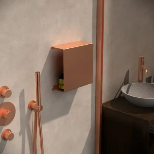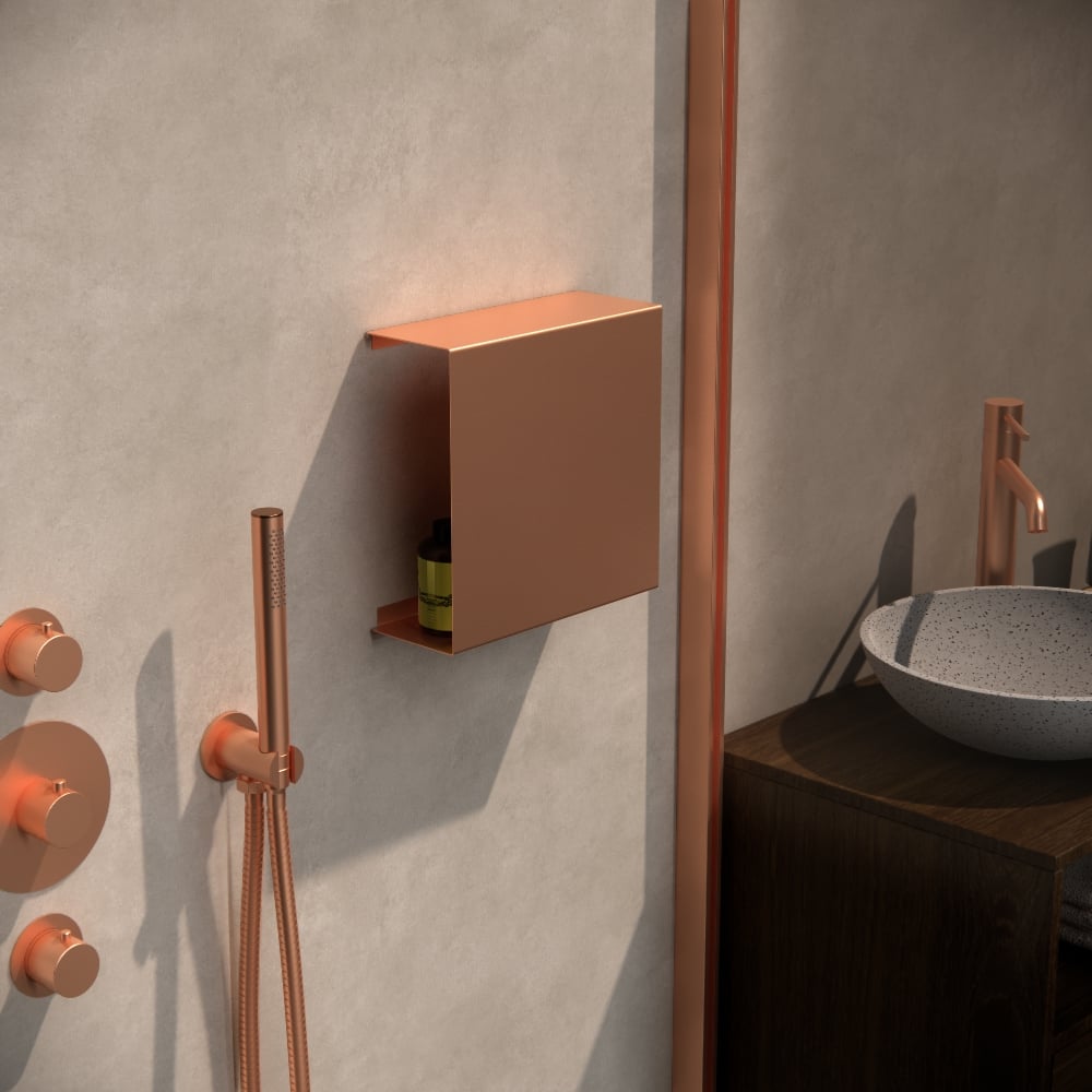De Guido Gusto opbouwnis 25×25 cm in copper is de ideale mix van stijl en functionaliteit voor je badkamer. Dankzij het minimalistische ontwerp en de moderne matte afwerking voegt deze nis een subtiele maar luxueuze touch toe aan je interieur. Perfect om je verzorgingsproducten netjes op te bergen of om je badkamer een stijlvolle upgrade te geven.