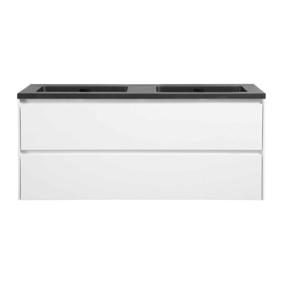 Badkamermeubel Nero 120cm mat wit met zwarte wastafel zonder kraangat