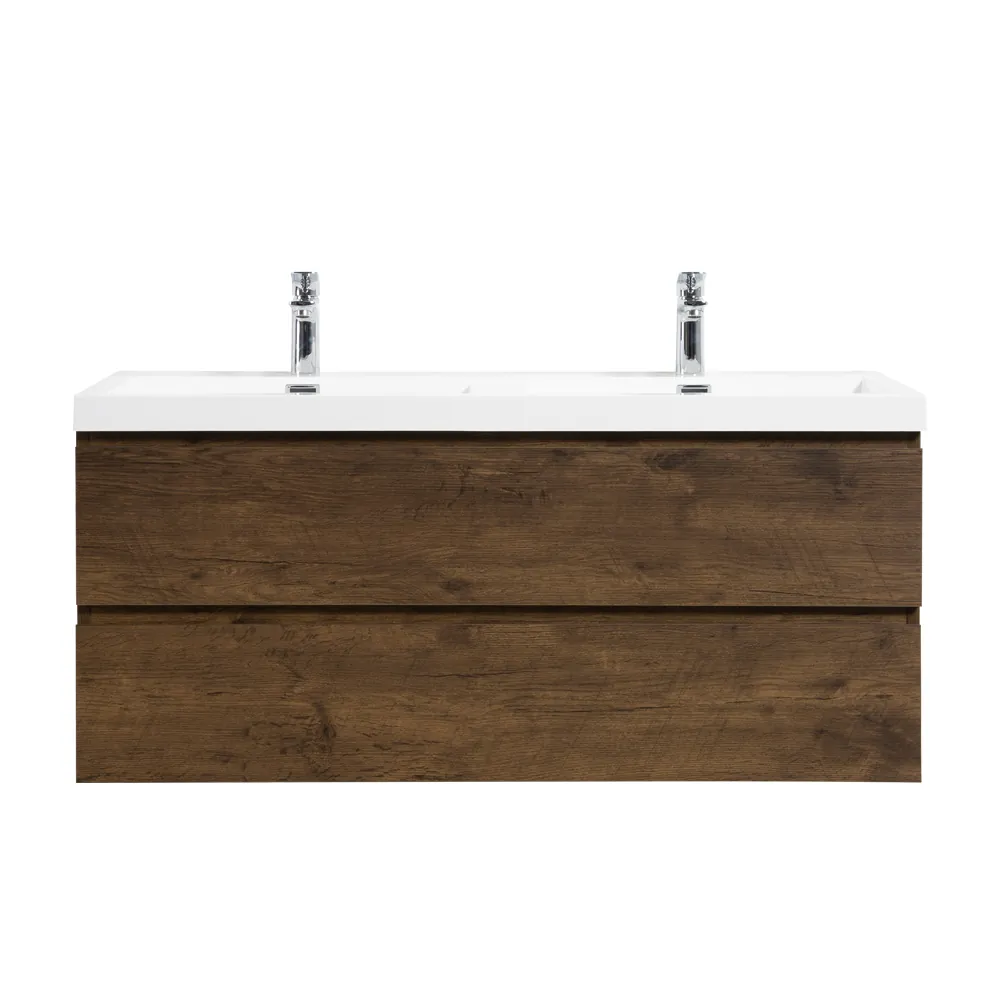 De onderkast is gemaakt van gelamineerd MDF en voorzien van twee lades met soft-close techniek. Deze techniek remt de lade automatisch tijdens het dichtschuiven, om deze vervolgens rustig te sluiten. De lades zijn voorzien van geïntegreerde grepen. Het kraangat is voorgeboord met een diameter van 3,5cm (universele maat).