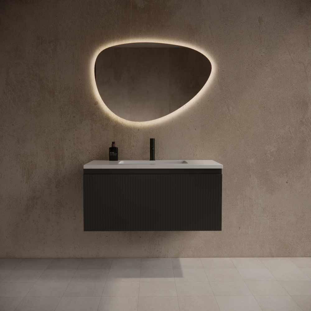 Badkamermeubel Yuki 100cm mat zwart inclusief wastafel met kraangat mat wit
