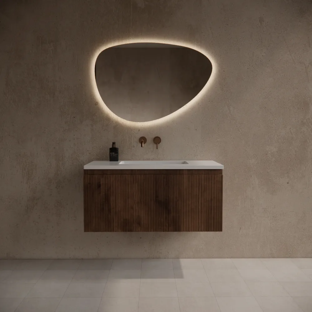 Badkamermeubel Yuki 100cm walnoot inclusief wastafel zonder kraangat mat wit