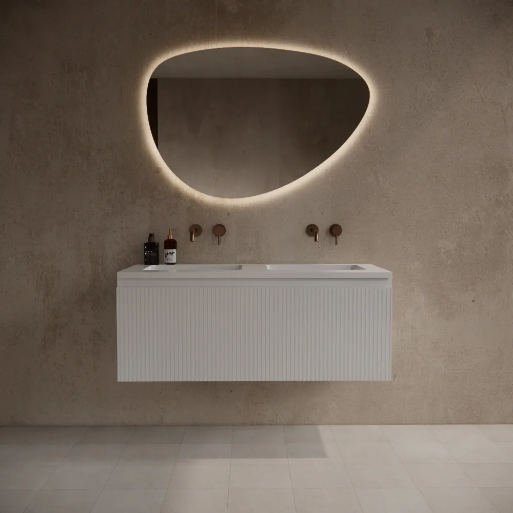 Badkamermeubel Yuki 120cm mat wit inclusief dubbele wastafel zonder kraangaten mat wit