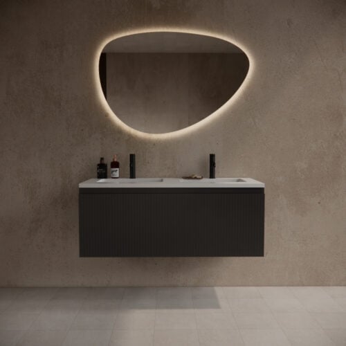 Badkamermeubel Yuki 120cm mat zwart inclusief dubbele wastafel met twee kraangaten mat wit