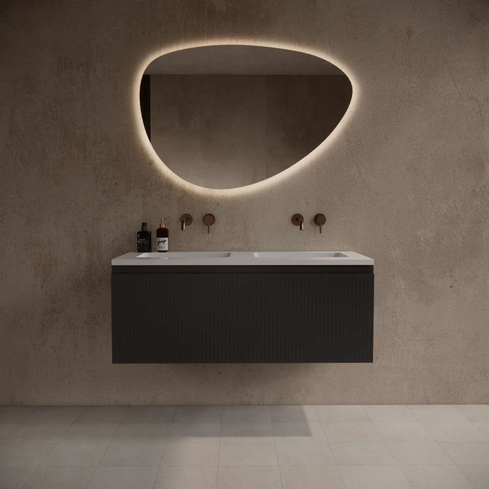 Badkamermeubel Yuki 120cm mat zwart inclusief dubbele wastafel zonder kraangaten mat wit