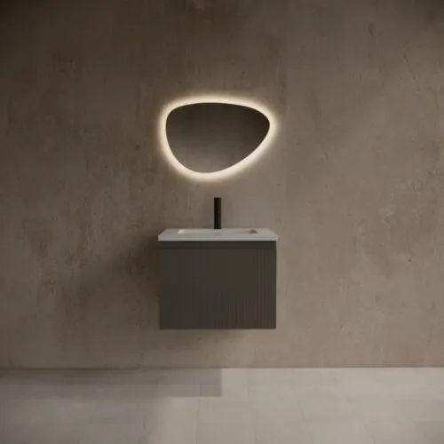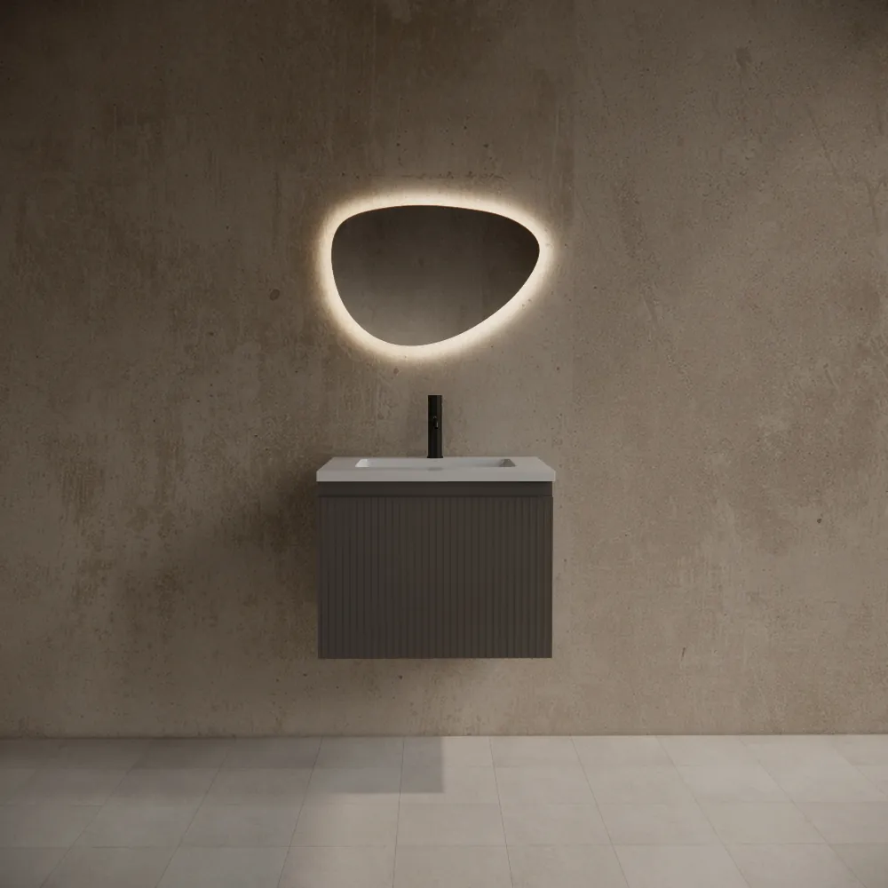 Badkamermeubel Yuki 60cm mat grijs inclusief wastafel met kraangat mat wit