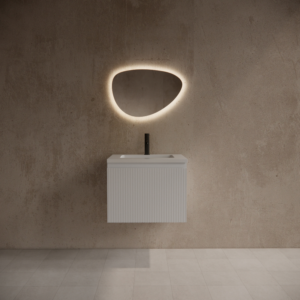 Badkamermeubel Yuki 60cm mat wit inclusief wastafel met kraangat mat wit