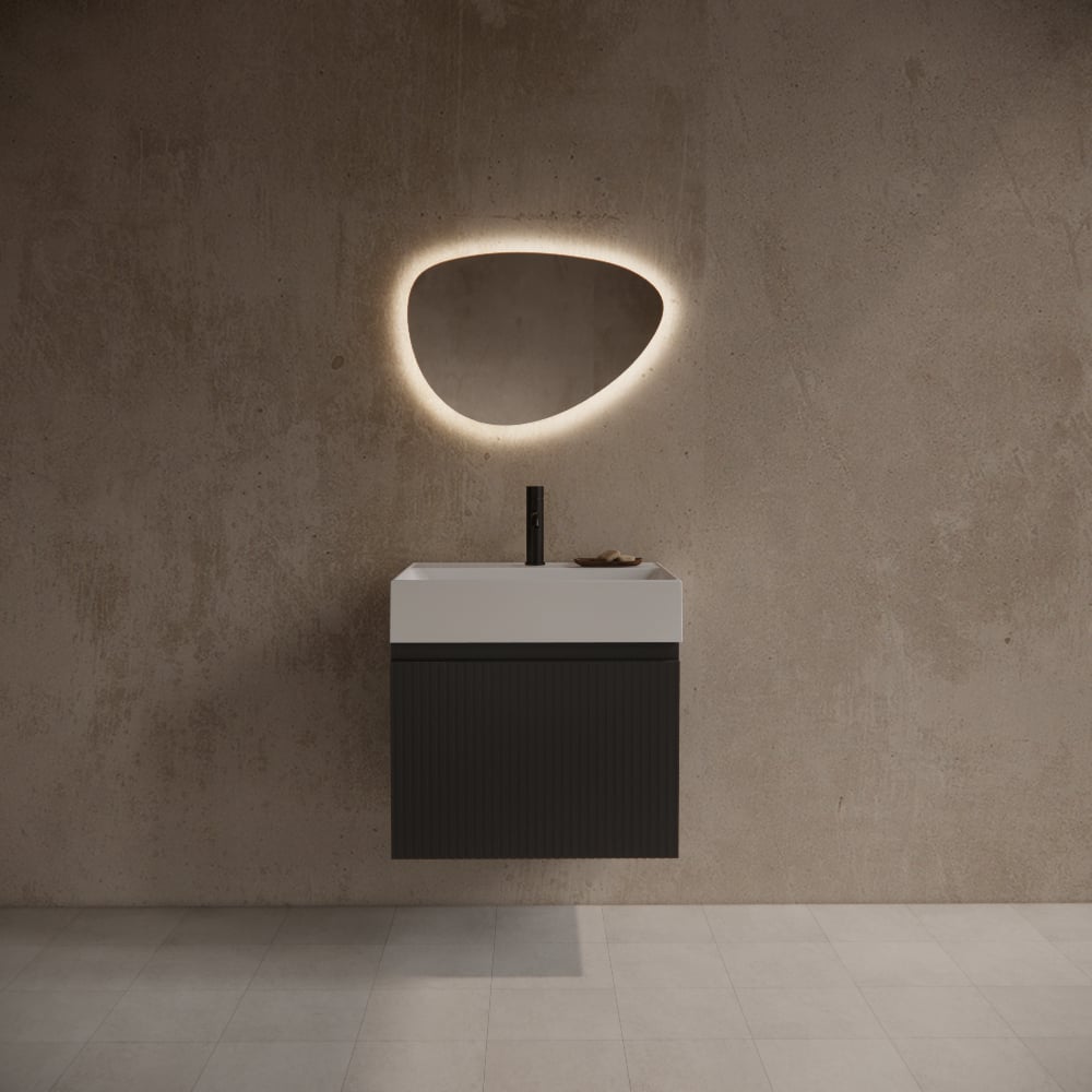 Badkamermeubel Yuki 60cm mat zwart inclusief wastafel robuust glans wit met kraangat