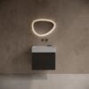 Badkamermeubel Yuki 60cm mat zwart inclusief wastafel robuust glans wit zonder kraangat