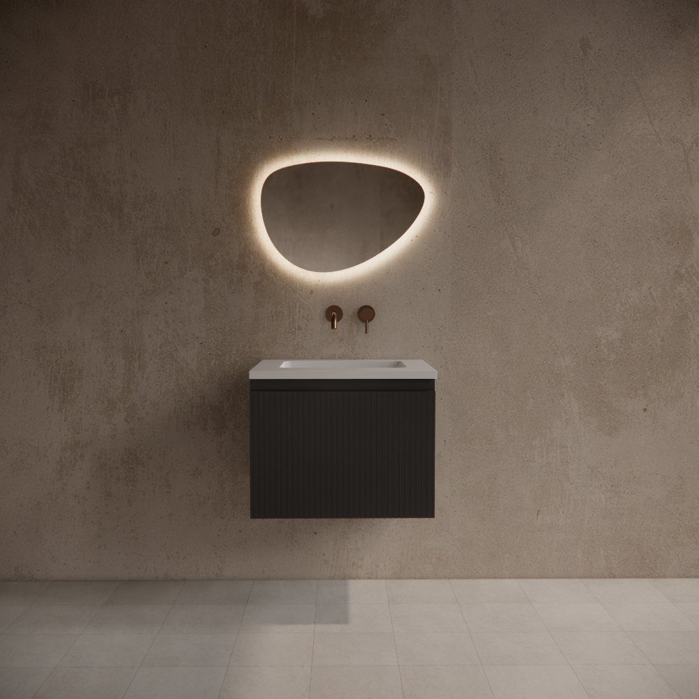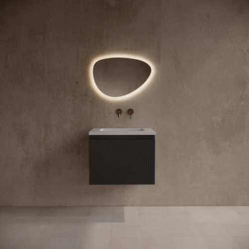 Badkamermeubel Yuki 60cm mat zwart inclusief wastafel zonder kraangat mat wit