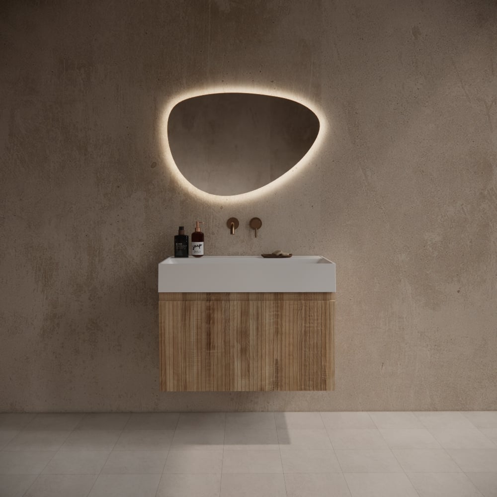 Badkamermeubel Yuki 80cm licht eiken inclusief wastafel robuust glans wit zonder kraangat