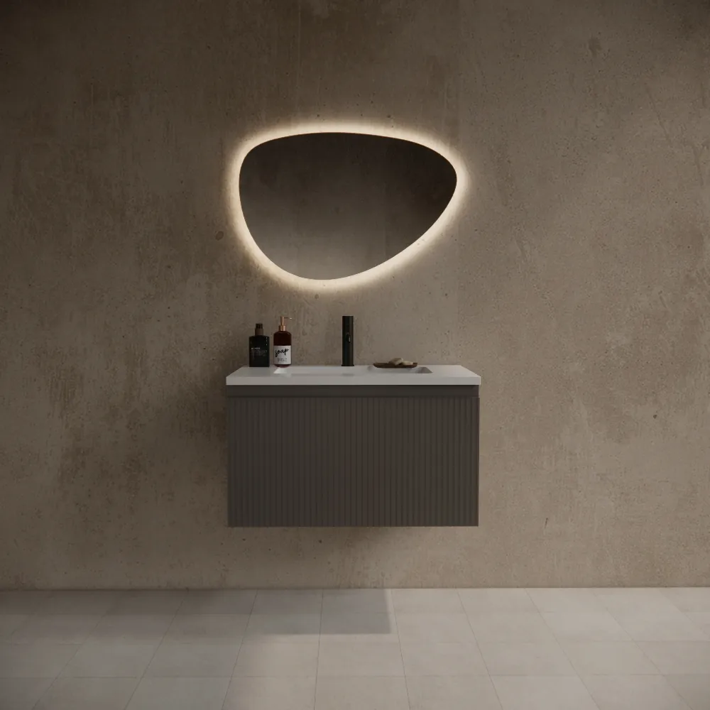 Badkamermeubel Yuki 80cm mat grijs inclusief wastafel met kraangat mat wit