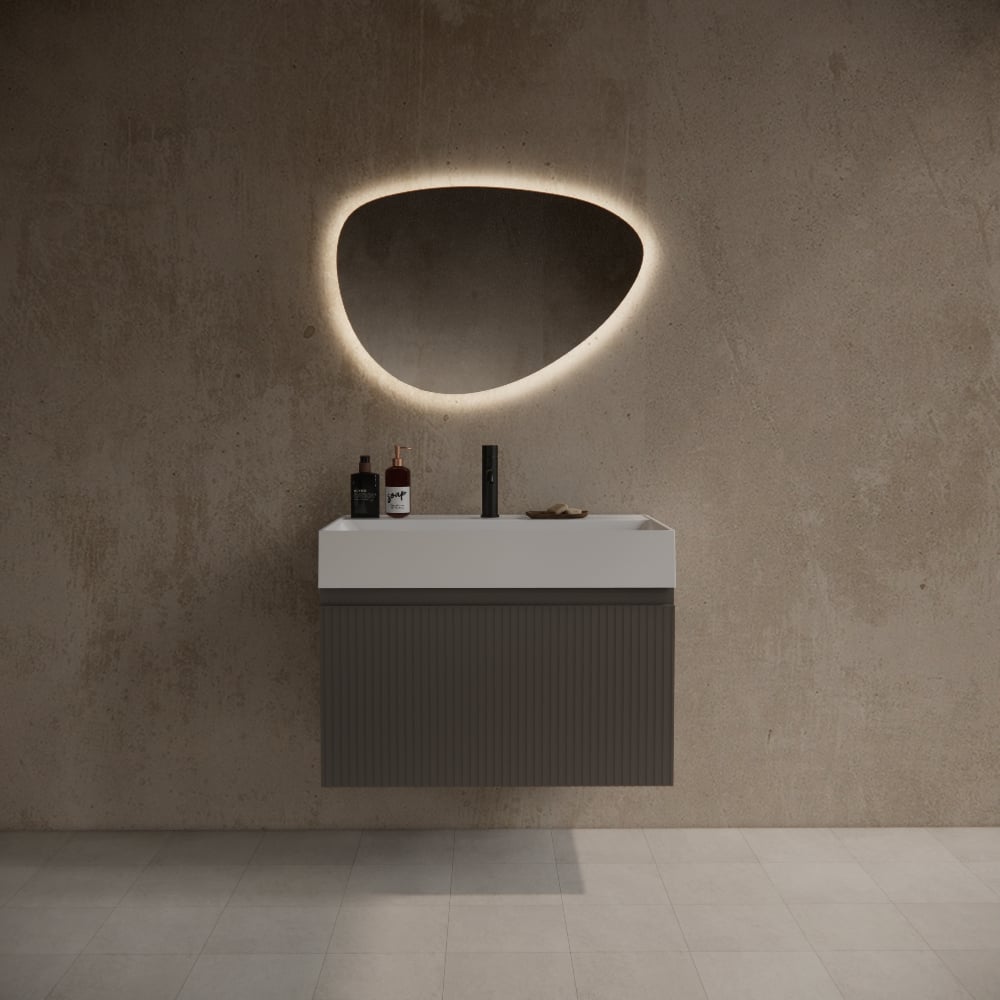 Badkamermeubel Yuki 80cm mat grijs inclusief wastafel robuust glans wit met kraangat