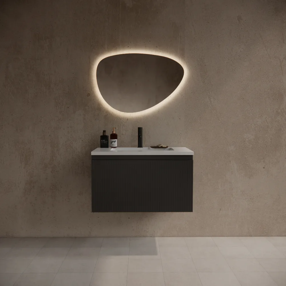 Badkamermeubel Yuki 80cm mat zwart inclusief wastafel met kraangat mat wit