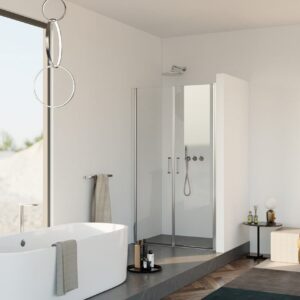 De douchedeur Rafaella is ontworpen met deuren die uitsluitend naar buiten draaien voor maximale gebruiksvriendelijkheid en ruimtebesparing.