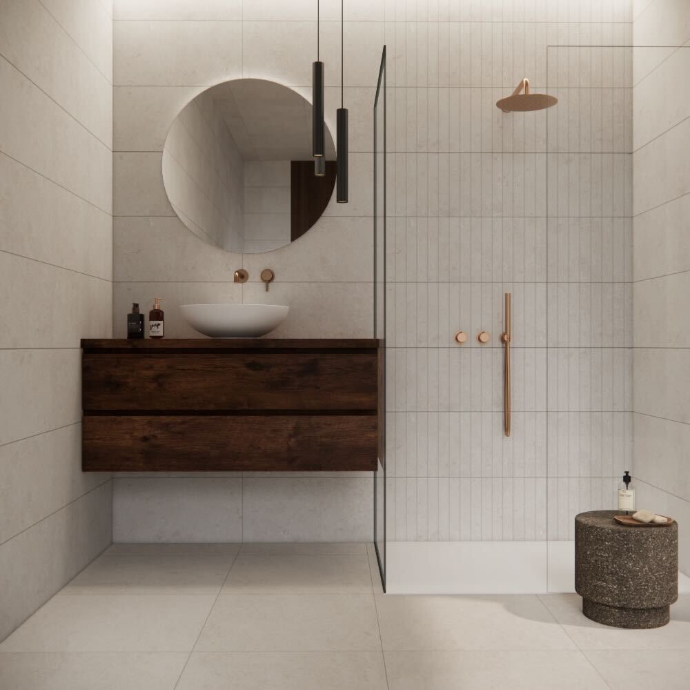 De hoogte waarop je de badkamerspiegel boven de wastafel hangt, wordt beïnvloed door zowel de grootte als de vorm van de spiegel. Een verticale, rechthoekige spiegel zal doorgaans dichter bij de wastafel worden geplaatst dan een horizontaal uitgestrekte variant. Hierdoor bestaat er geen vaste vuistregel voor de afstand tussen de twee.