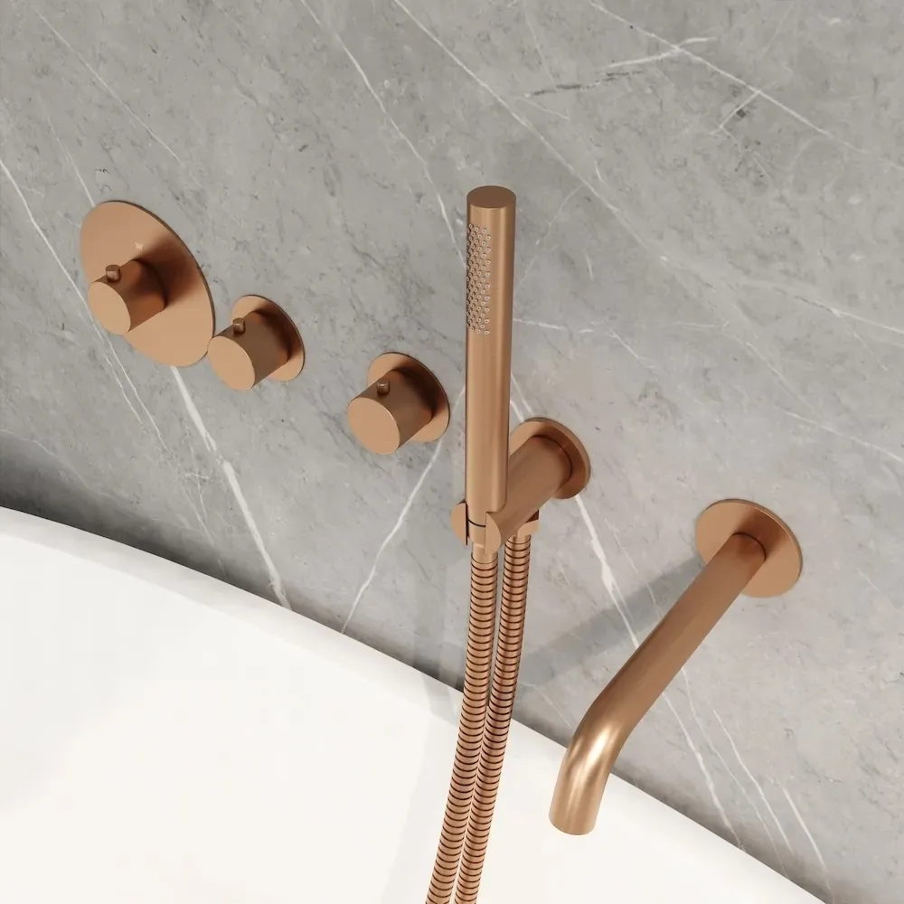 Thermostatische inbouw badkraan copper twee-knops bediening complete set