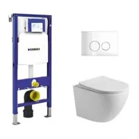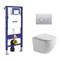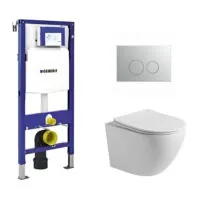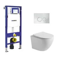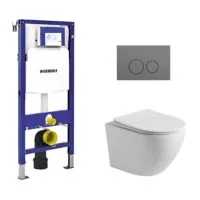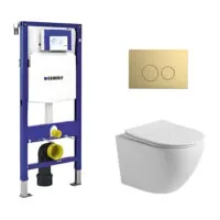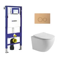 Toiletset Pietro randloos glans wit met bedieningspaneel flat copper en Geberit Duofix WC-element (UP320)