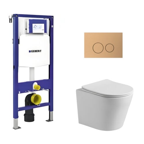 Toiletset Julio randloos glans wit met bedieningspaneel Flat copper en Geberit Duofix WC-element (UP320)