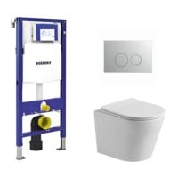 Toiletset Julio randloos glans wit met bedieningspaneel Flat geborsteld RVS en Geberit Duofix WC-element (UP320)