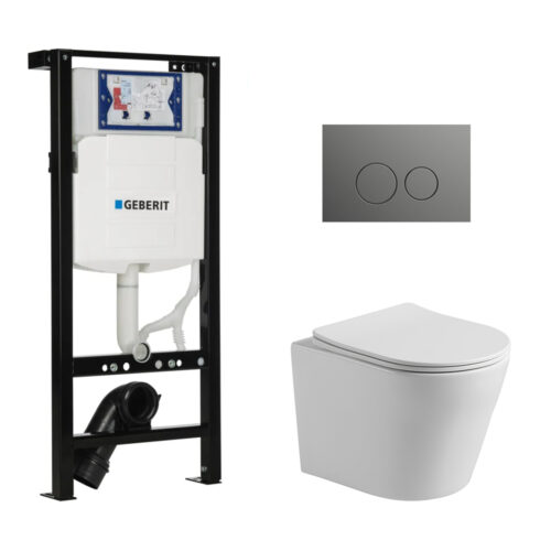 Toiletset Julio randloos glans wit met bedieningspaneel Flat gun metal geborsteld RVS en Plieger Duofix WC-element (UP320)