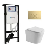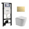Toiletset Julio randloos glans wit met bedieningspaneel Flat mat goud en Plieger Duofix WC-element (UP320)