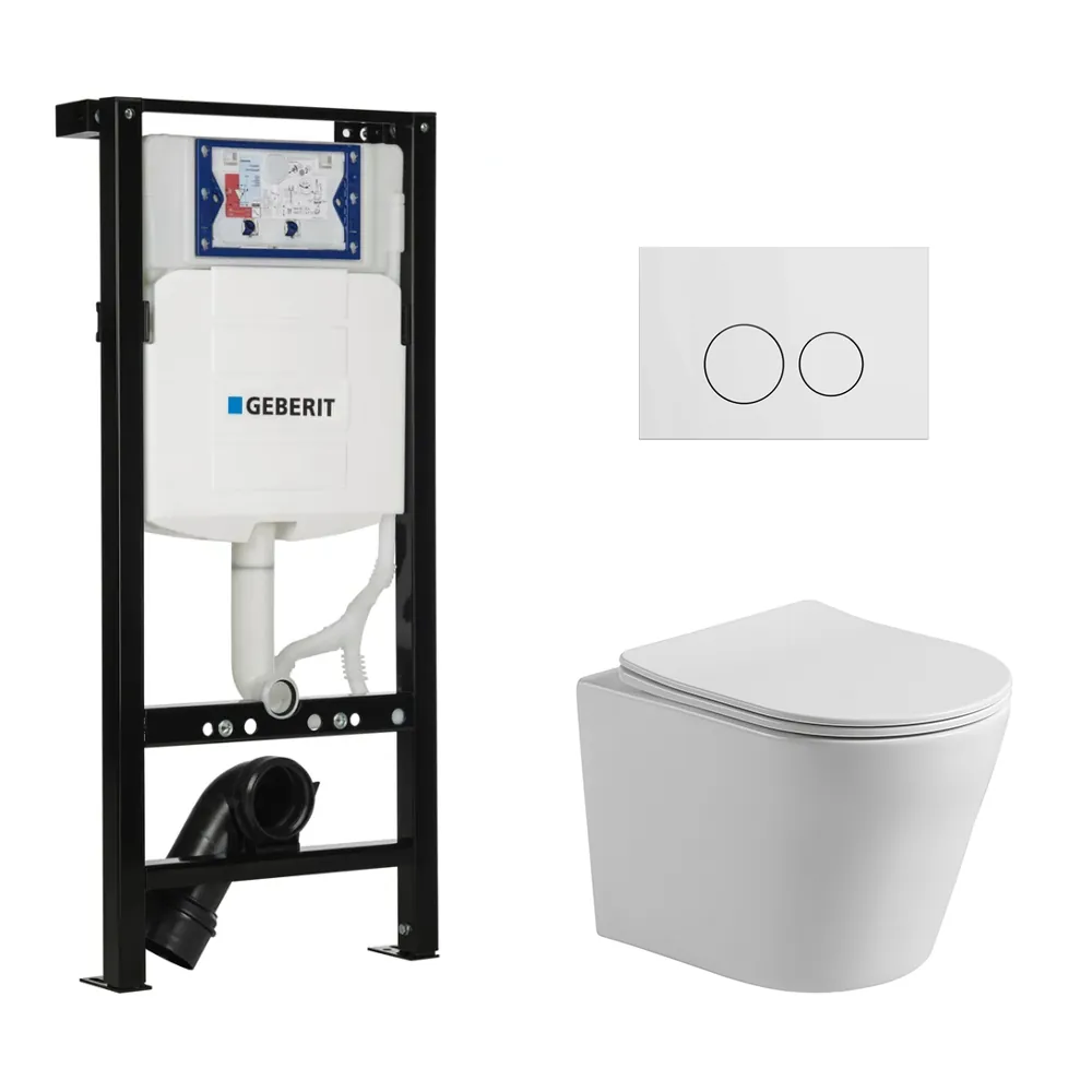 Toiletset Julio randloos glans wit met bedieningspaneel Flat mat wit en Plieger Duofix WC-element (UP320)
