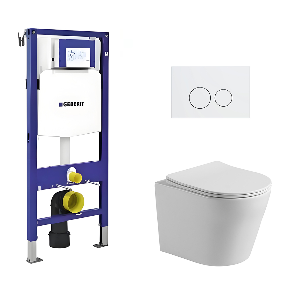 Toiletset Julio randloos glans wit met bedieningspaneel Flat mat wit RVS en Geberit Duofix WC-element (UP320)