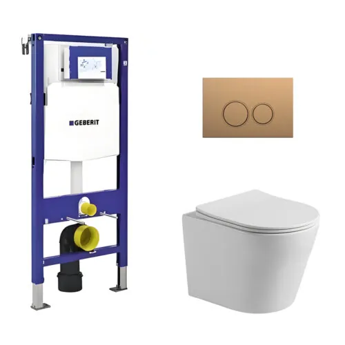 Toiletset Julio randloos glans wit met bedieningspaneel Ring copper en Geberit Duofix WC-element (UP320)