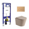 Toiletset Julio randloos mat beige met bedieningspaneel Flat copper en Geberit Duofix WC-element (UP320)