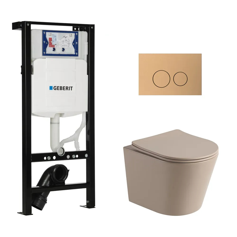Toiletset Julio randloos mat beige met bedieningspaneel flat copper en Plieger Duofix WC-element (UP320)