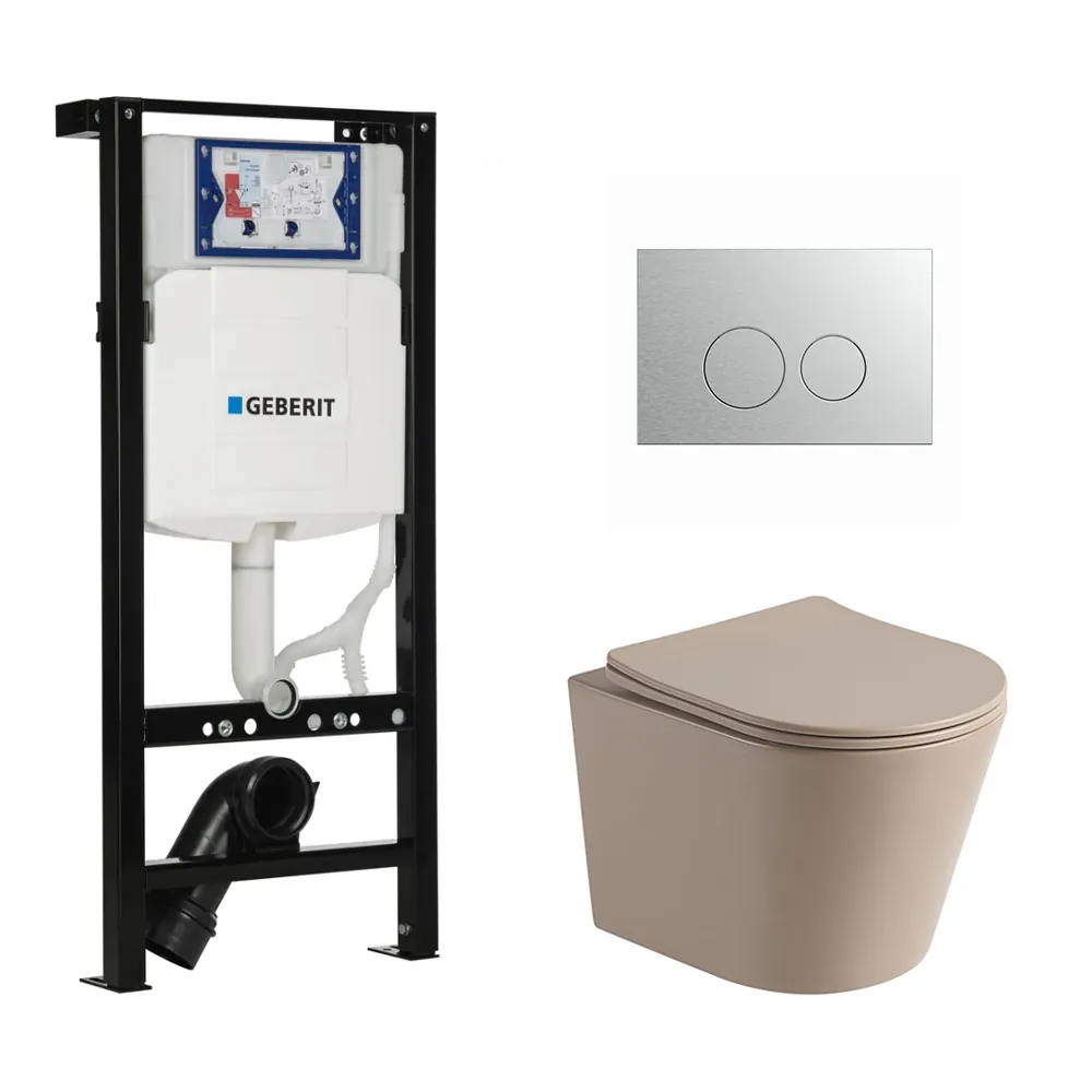 Toiletset Julio randloos mat beige met bedieningspaneel Flat geborsteld RVS en Plieger Duofix WC-element (UP320)