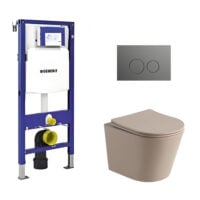 Toiletset Julio randloos mat beige met bedieningspaneel flat gun metal geborsteld RVS en Geberit Duofix WC-element (UP320)