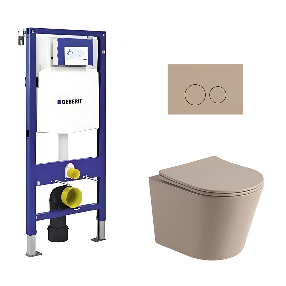Toiletset Julio randloos mat beige met bedieningspaneel Flat mat beige en Geberit Duofix WC-element (UP320)