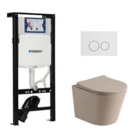 Toiletset Julio randloos mat beige met bedieningspaneel flat mat wit en PliegerDuofix WC-element (UP320)