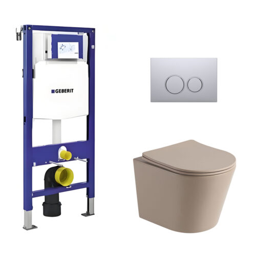 Toiletset Julio randloos mat beige met bedieningspaneel Ring RVS en Geberit Duofix WC-element (UP320)