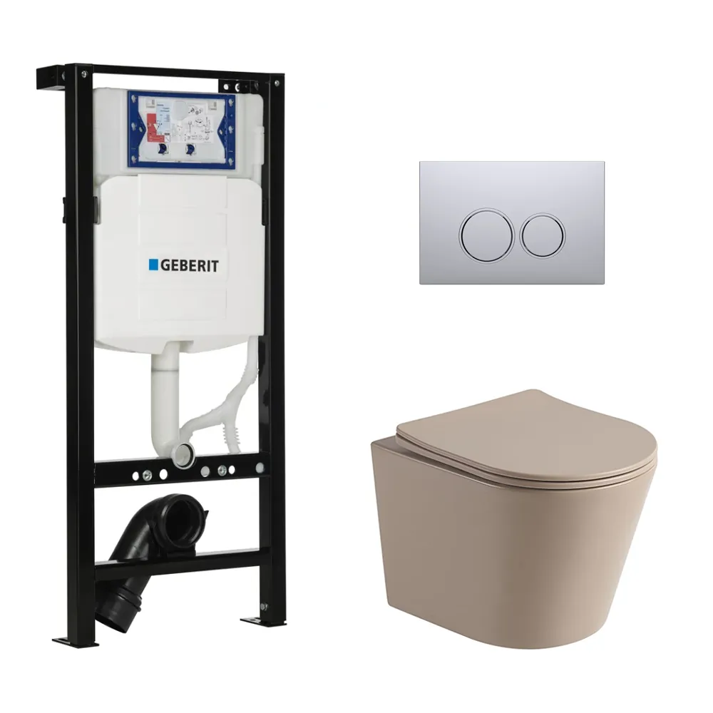 Toiletset Julio randloos mat beige met bedieningspaneel Ring RVS en Plieger Duofix WC-element (UP320)