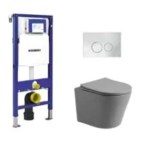Toiletset Julio randloos mat grijs met bedieningspaneel Flat chroom glanzend RVS en Geberit Duofix WC-element (UP320)