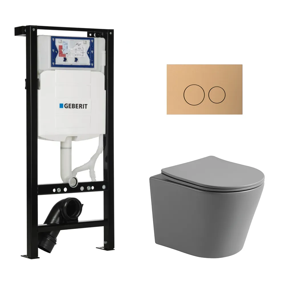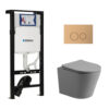 Toiletset Julio randloos mat grijs met bedieningspaneel Flat copper en Plieger Duofix WC-element (UP320)