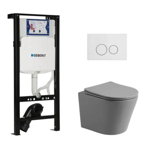 Toiletset Julio randloos mat grijs met bedieningspaneel Flat mat wit en Plieger Duofix WC-element (UP320)