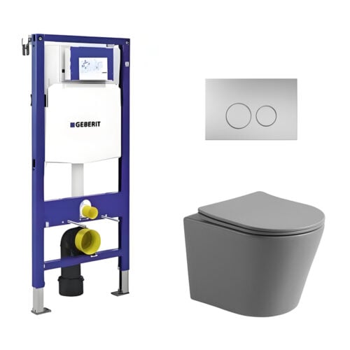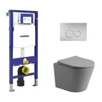 Toiletset Julio randloos mat grijs met bedieningspaneel Flat RVS en Geberit Duofix WC-element (UP320)