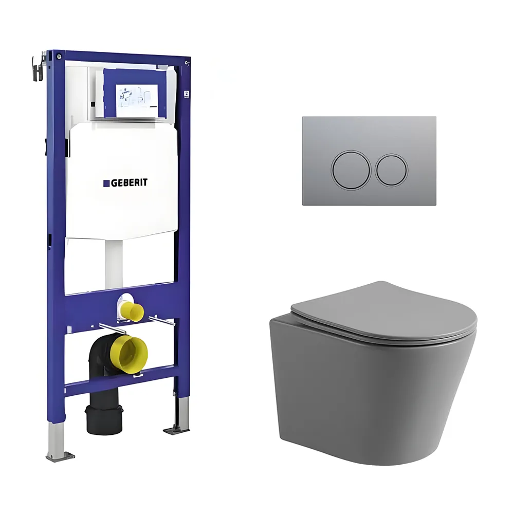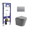 Toiletset Julio randloos mat grijs met bedieningspaneel Ring gun metal en Geberit Duofix WC-element (UP320)